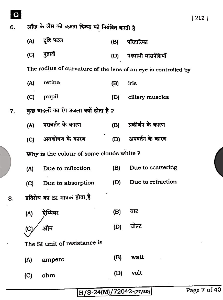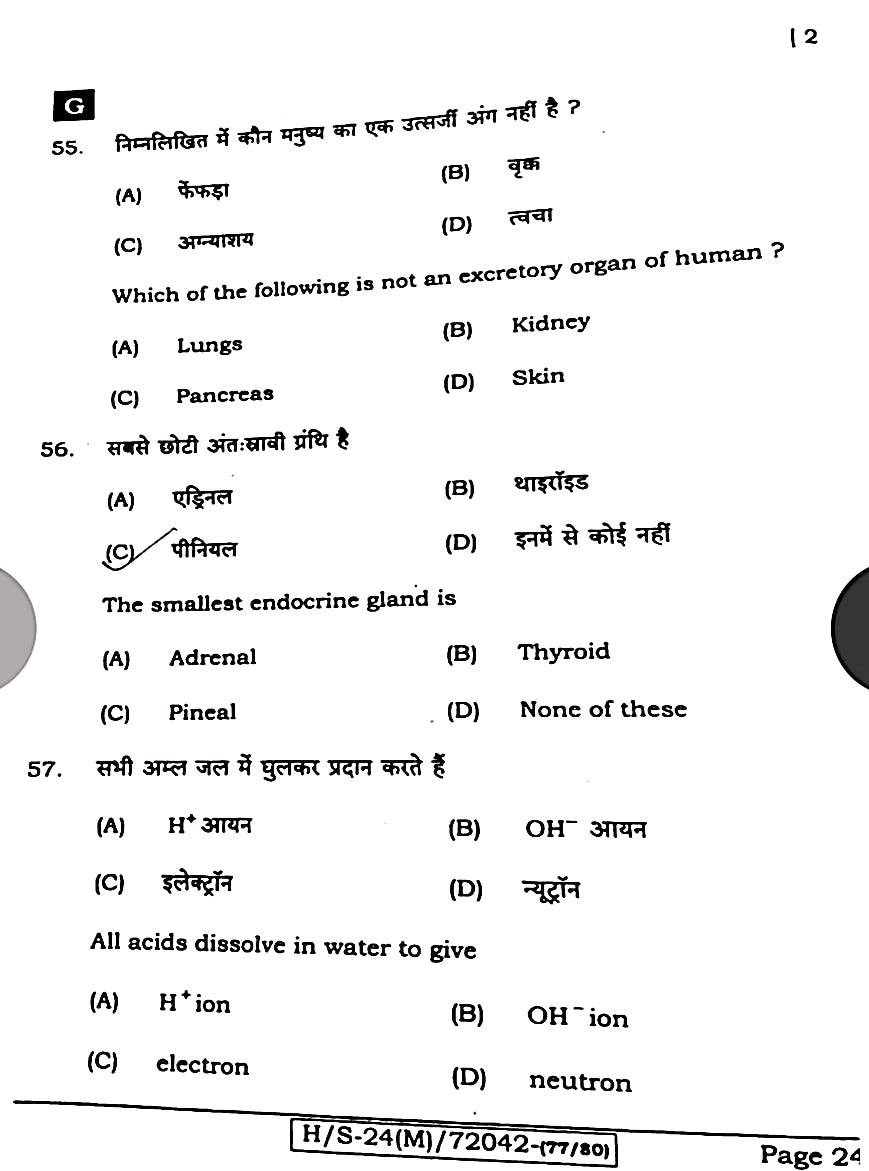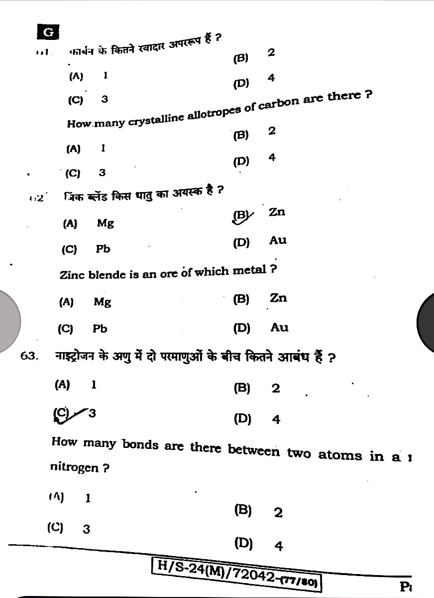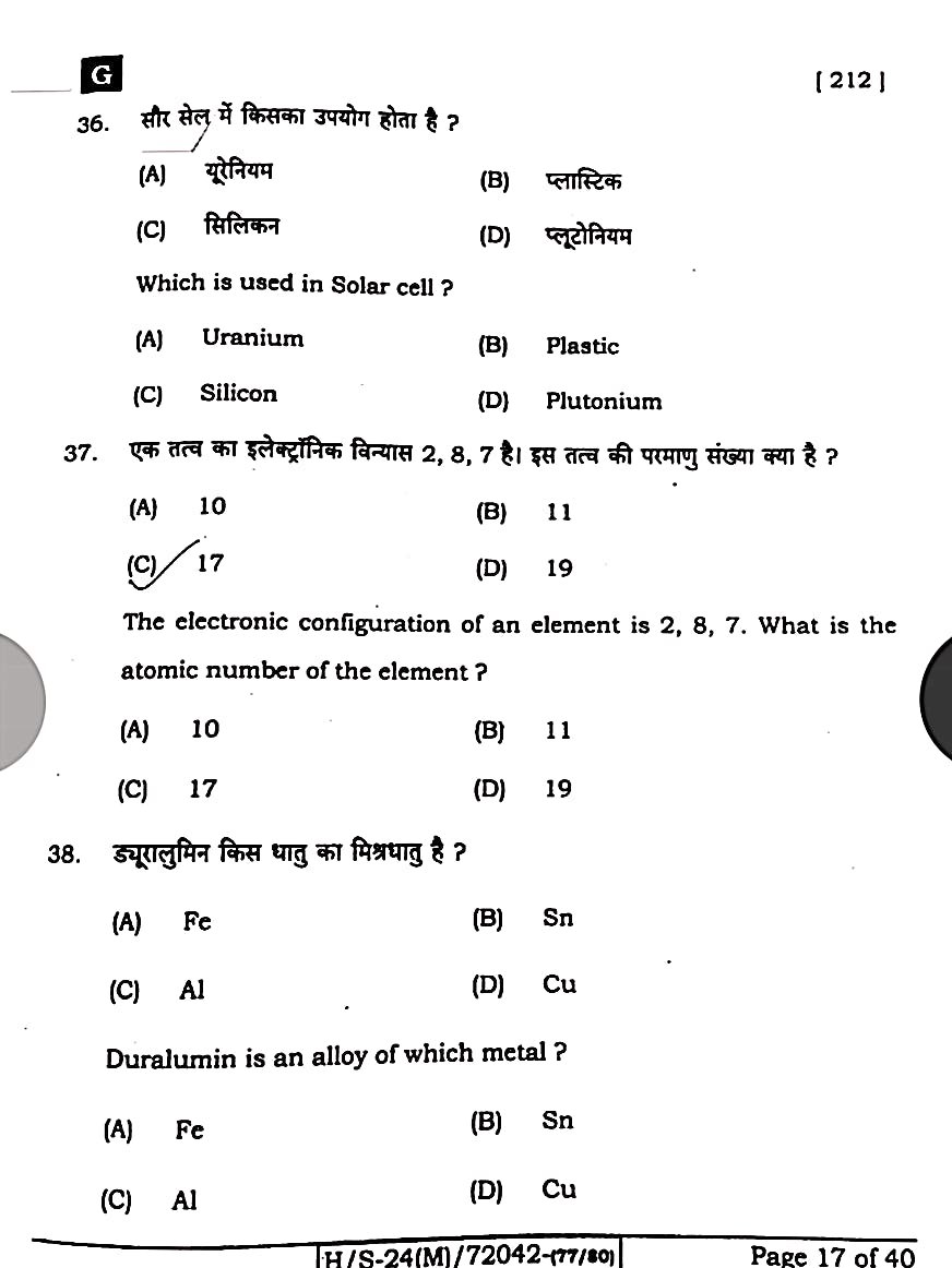 बिहार बोर्ड 21 फरवरी विज्ञान पेपर:-