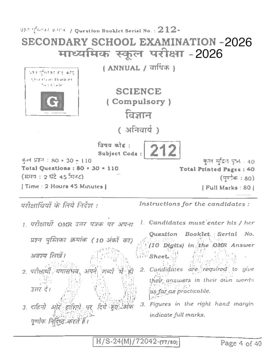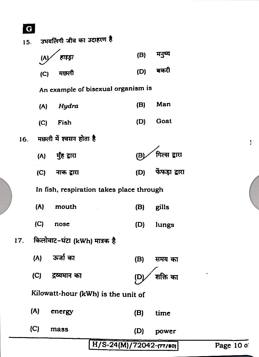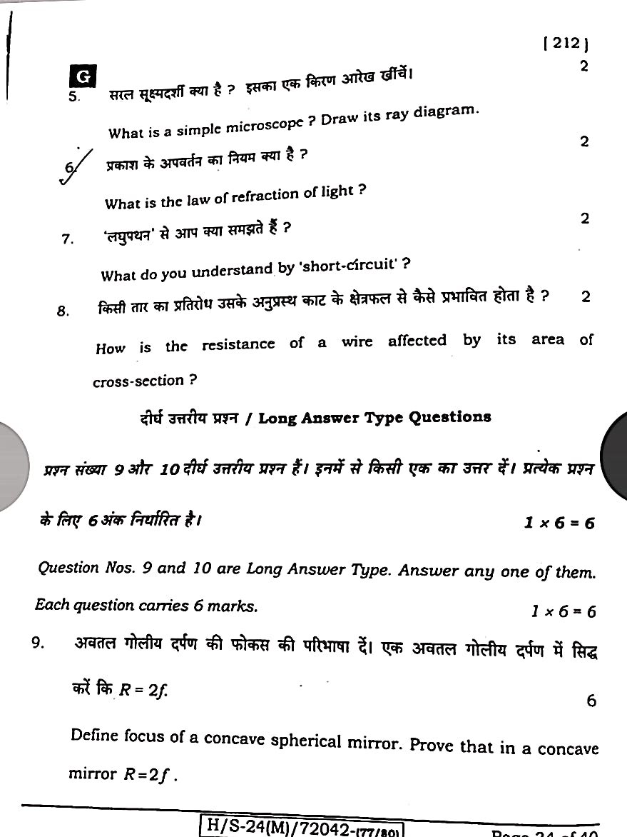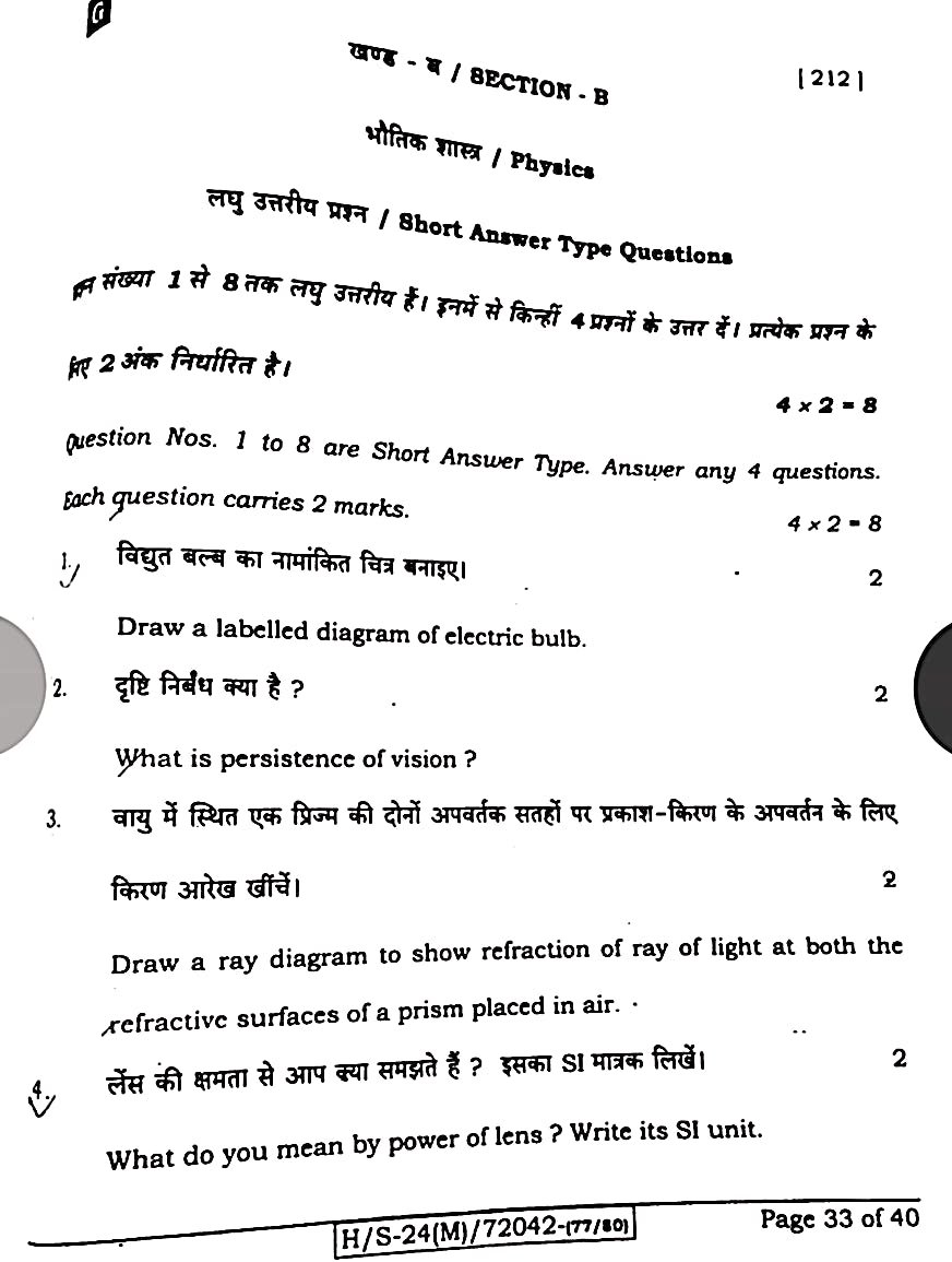 बिहार बोर्ड मैट्रिक विज्ञान मॉडल क्वेश्चन पेपर:-