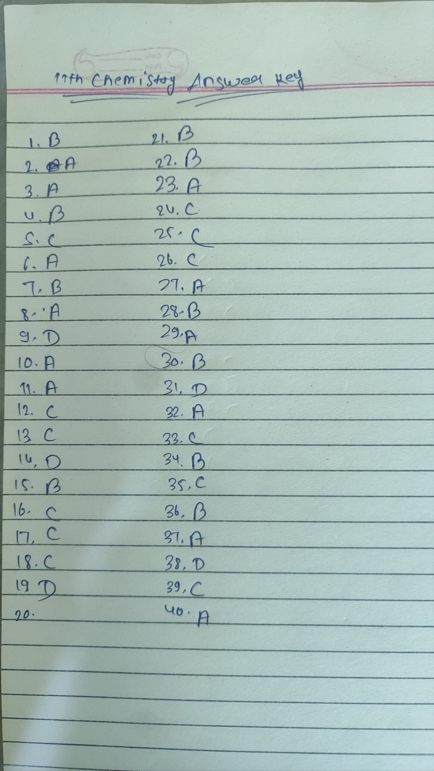 Class 11th chemistry 19 September Answer Key Quarterly Exam 2025:-