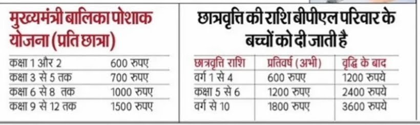 बिहार सरकार द्वारा जो मुख्यमंत्री पोशाक योजना की शुरुआत की गई है, इस योजना के अंतर्गत आपकी क्लास के हिसाब से राशि प्रदान की जाएगी जो कि नीचे निम्नलिखित बतलाई गए हैं।