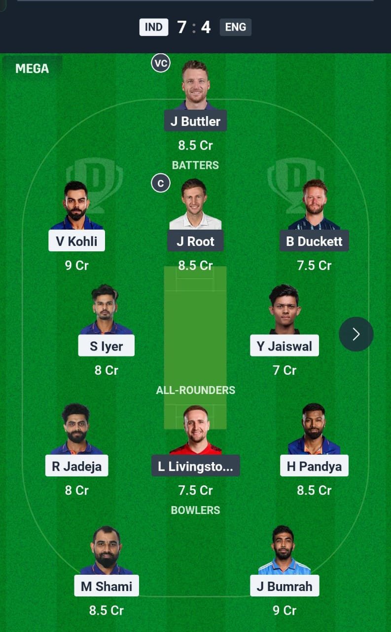 IND VS ENG 1st ODI Dream11 Prediction:-