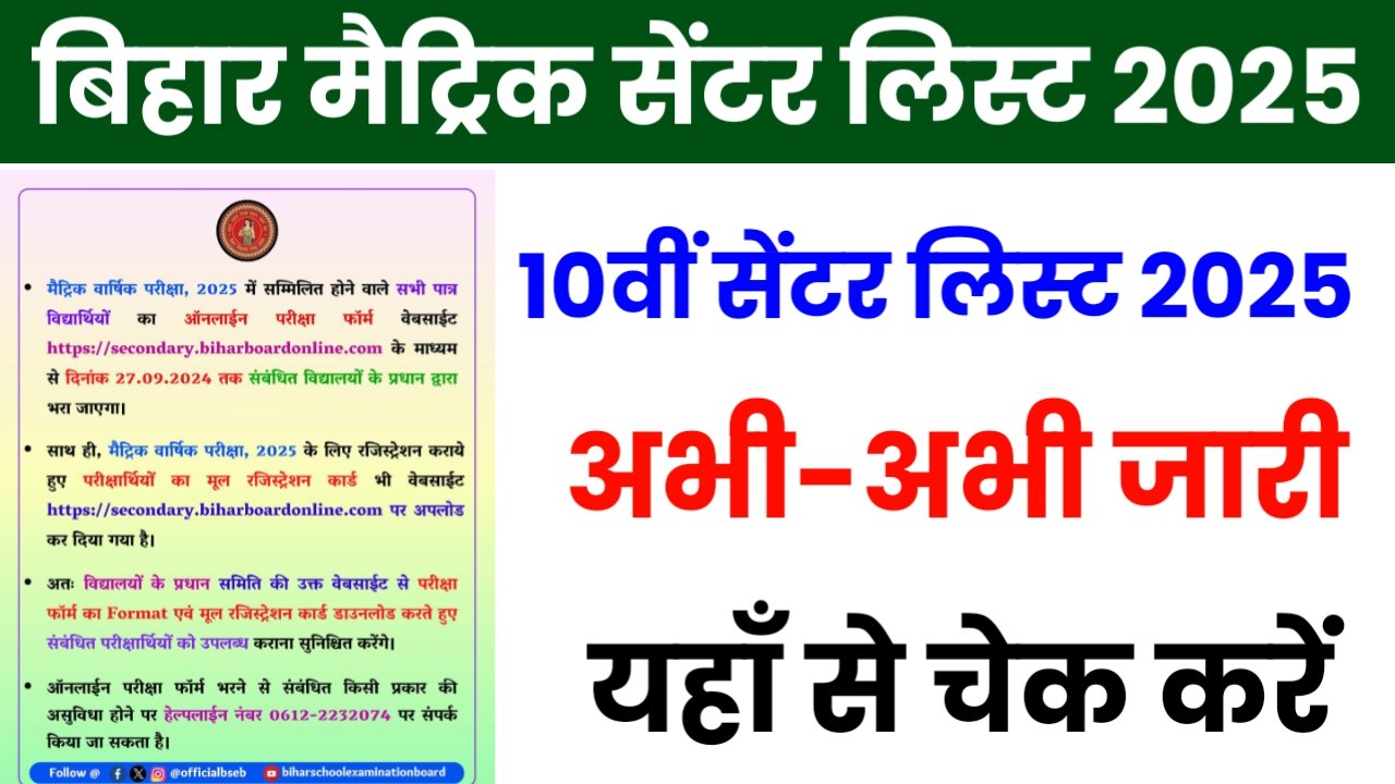 Bihar Board 10th 12th Center List District Wise Release 2025: मैट्रिक-इंटर के सभी छात्र, यहाँ से अपना परीक्षा केंद्र देखें