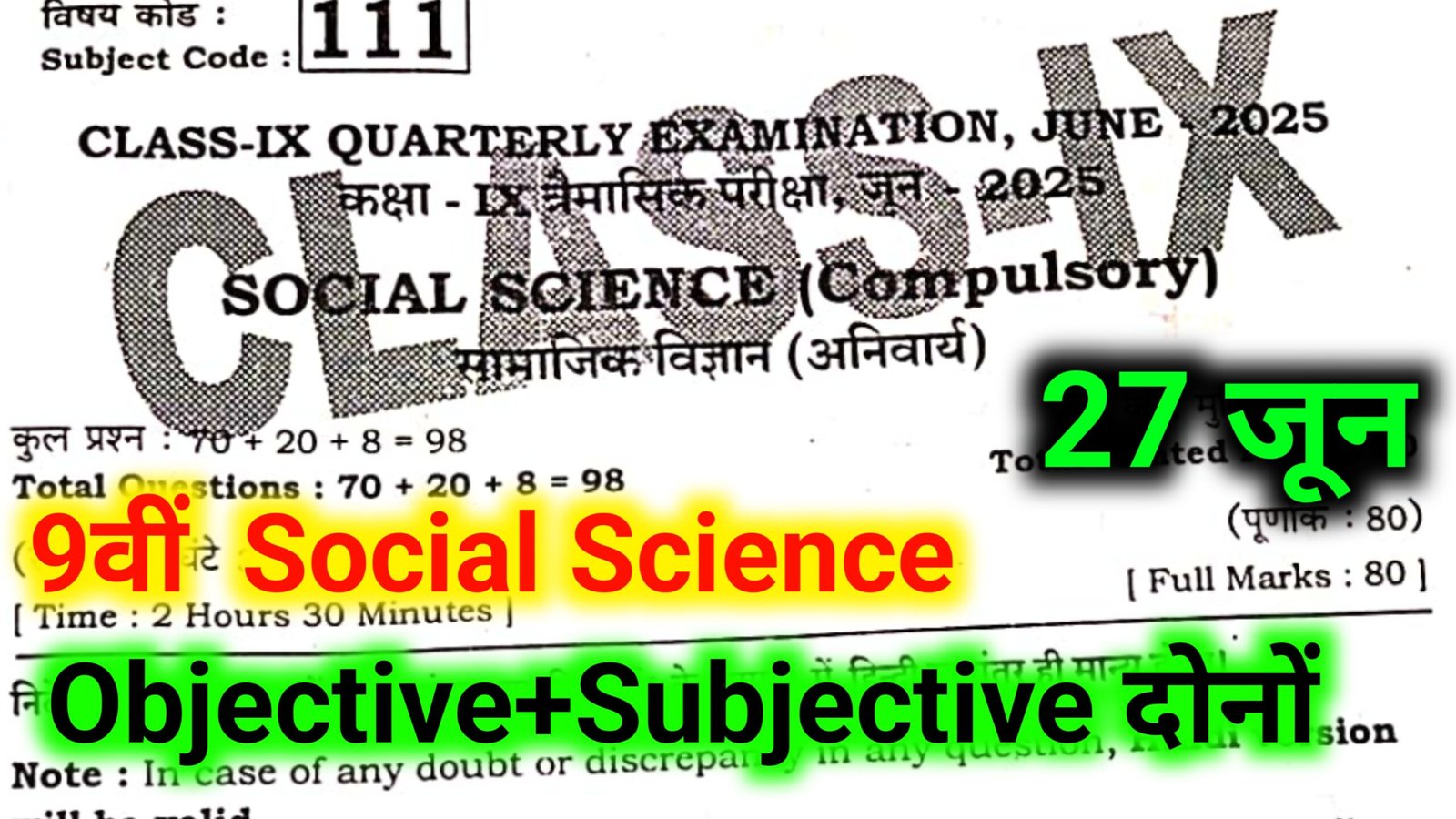 Bihar Board 9th Social Science 27 June Quarterly Exam Answer Key 2025: बिहार बोर्ड 9वीं त्रैमासिक परीक्षा, Answer Key | 100% सही