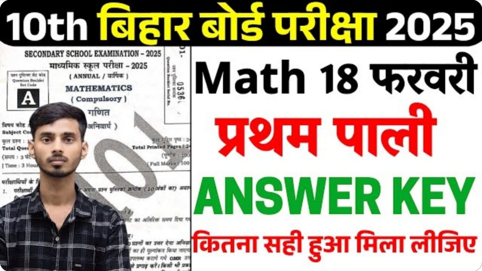 Bihar Board 10th Math 1st sift Answer Key 2025 All Sets: मैट्रिक वार्षिक परीक्षा, 18 फरवरी Answer Key, 100% सही, मिला लो कितना सही है।
