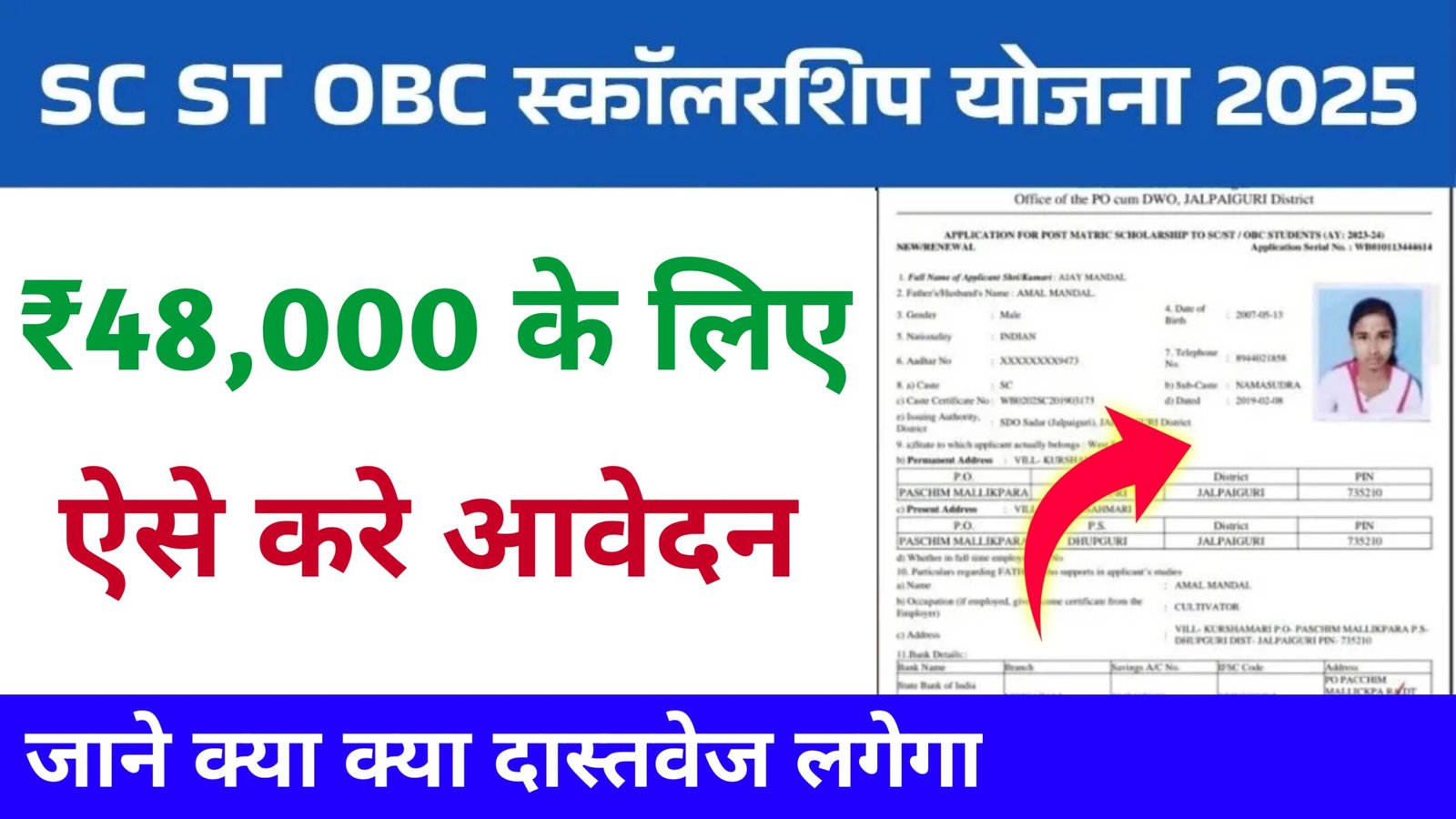 SC, ST, OBC Scholarship 2025 Online Apply suru: 48,000 रुपए के स्कॉलरशिप के लिए, आवेदन की प्रक्रिया शुरू