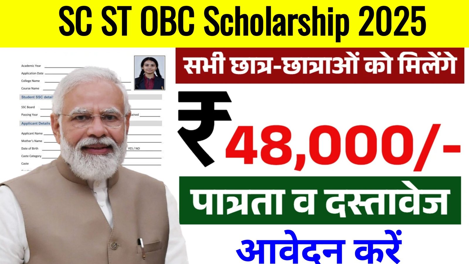 SC, ST, OBC Scholarship 2025 Apply online: 3 दस्तावेज़ से मिलेगी ₹48,000 की मदद, 7 दिन का मौका, करें आवेदन
