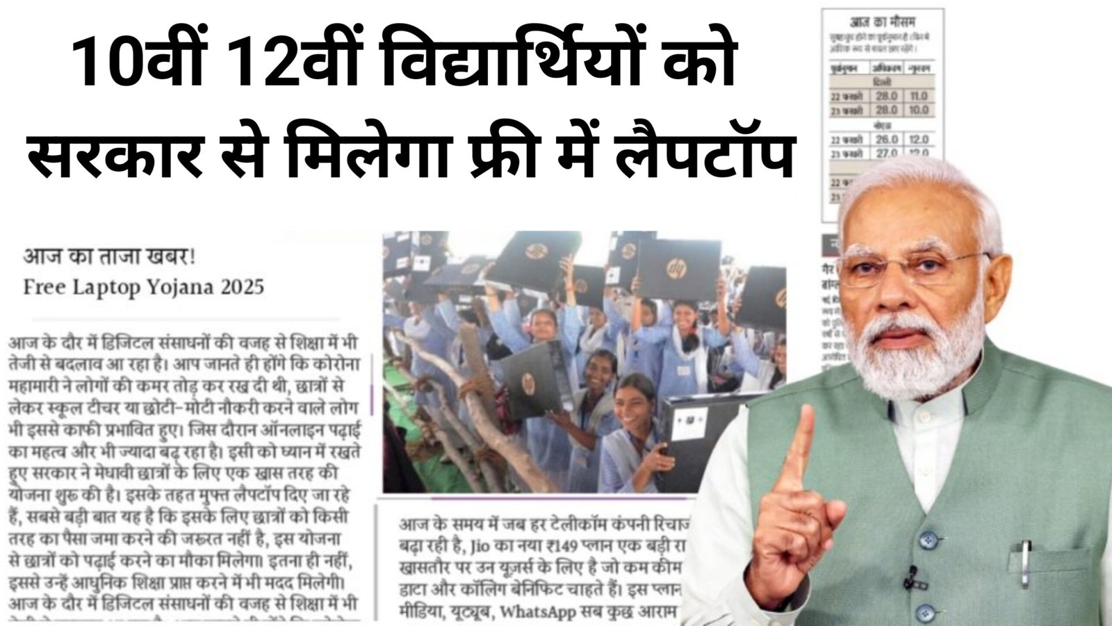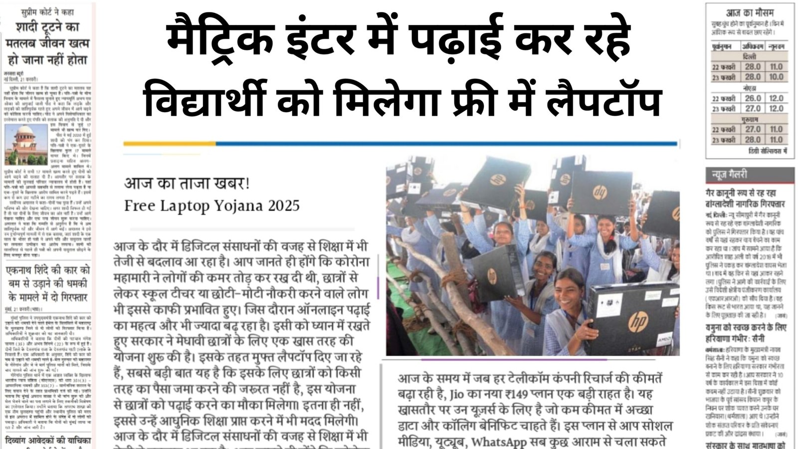 Free Laptop Yojana 2025: 10वीं-12वीं में 60% से ज्यादा नंबर लाओ, सरकार से पाएं फ्री लैपटॉप, जानिए आवेदन की पूरी प्रक्रिया